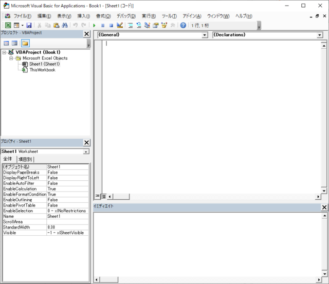 これがVBAの開発画面です。VBEと呼ばれています(Visual Basic Editorの略です)。
