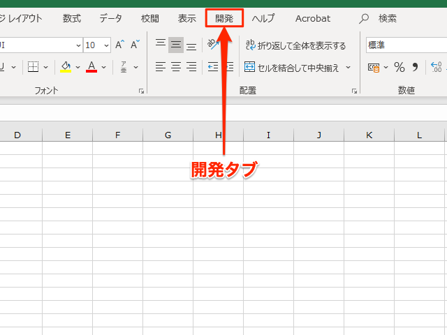 VBAを使うためにはExcelの「開発」タブを表示する必要があります。