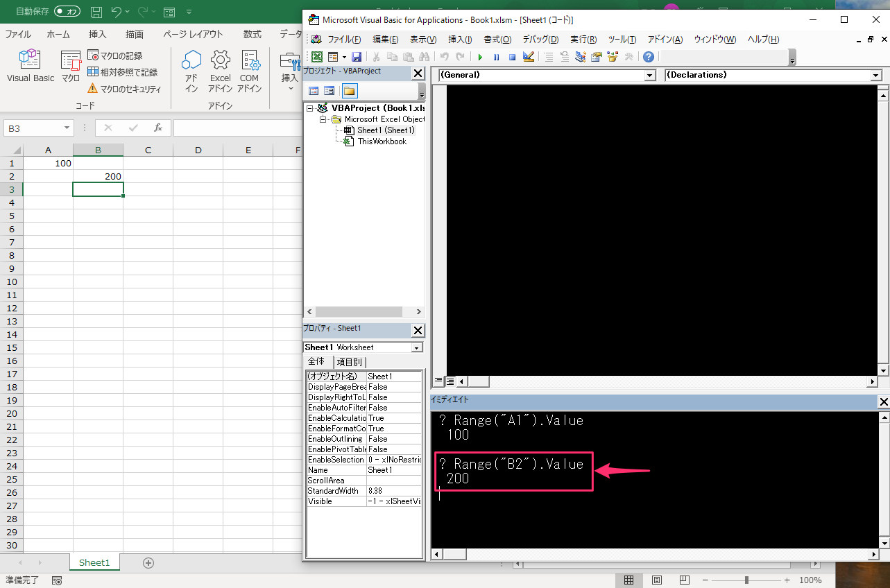 このイミディエイトウィンドウを、Excelを自由にコントロールできる窓だと思ってください。