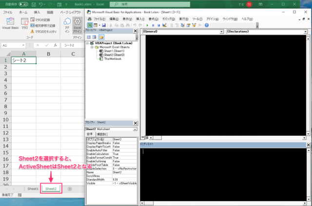 Sheet2がアクティブになることで、ActiveSheetはSheet2を指すことになります。