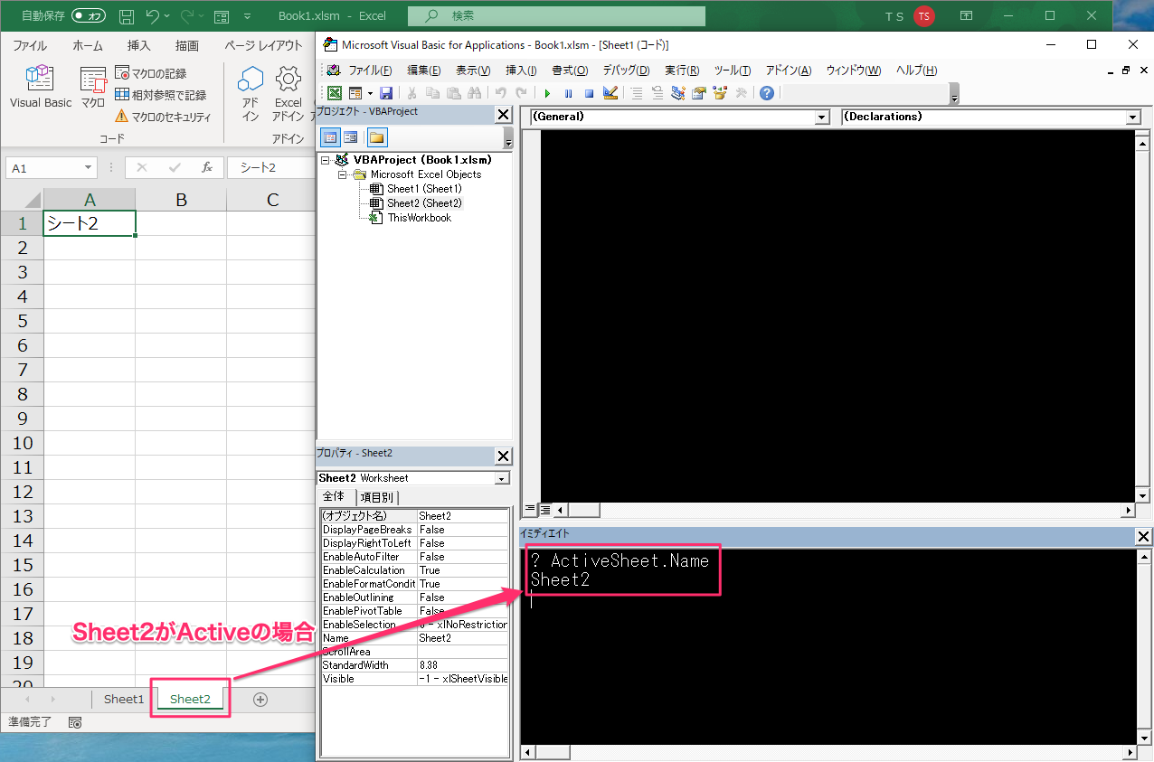 Sheet2がアクティブになることで、ActiveSheetはSheet2を指すことになります。