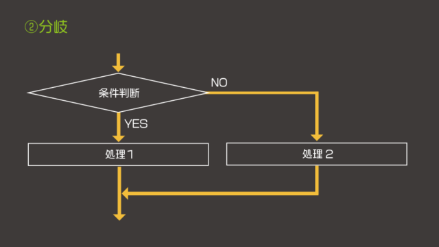 そして、分岐というのは、条件に従って実行する処理を変えるということです。